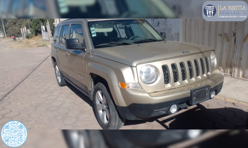 En un recorrido preventivo realizado en la comunidad de San Bartolomé Cuahuixmatlac, precisamente al recorrer la calle Pablo Pérez, los elementos policiales ubicaron una camioneta Jeep, tipo Patriot, modelo 2014, la cual, carecía de placas, tenía una ventanilla trasera baja, además que una calavera estaba rota.