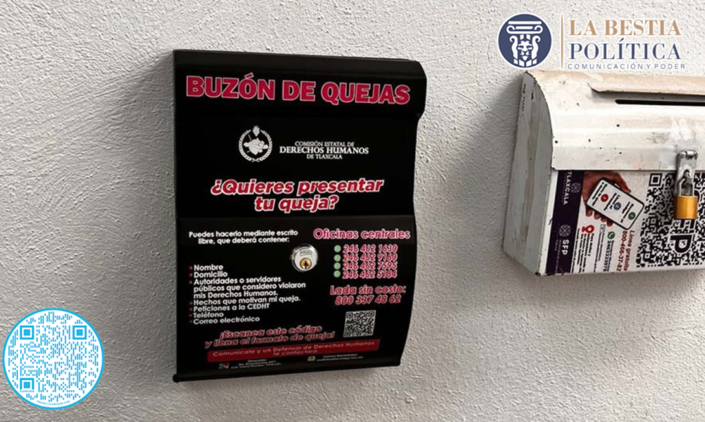La Comisión Estatal de Derechos Humanos de Tlaxcala (CEDHT) instaló Buzones de Quejas en la Procuraduría General de Justicia del Estado (PGJE) y en instalaciones de las Agencias del Ministerio Público de esta dependencia, con la finalidad de que los usuarios pueden manifestar cómo fueron tratados por parte de las personas servidoras públicas o, en su caso, presentar quejas por presuntas violaciones a sus derechos humanos.