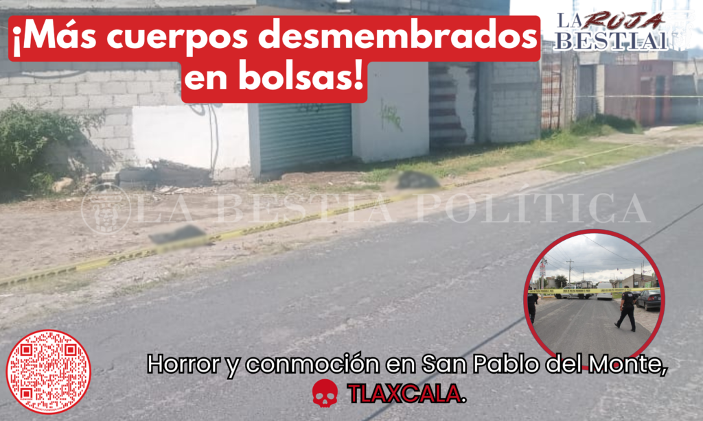 La mañana de hoy, autoridades confirmaron el hallazgo de dos bolsas que contenían un cuerpo desmembrado en el Barrio de San Nicolás, en el municipio de San Pablo del Monte. De manera extraoficial se sabe que el cuerpo estaba partido a la mitad.