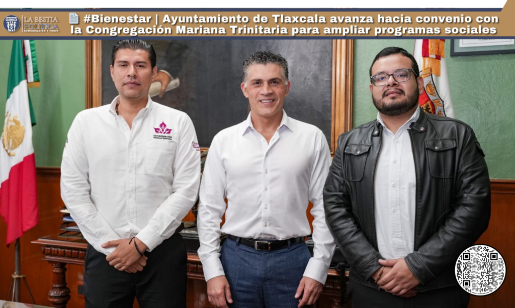 Con el objetivo de fortalecer los programas sociales que impactan directamente en la calidad de vida de las familias capitalinas, el presidente municipal de Tlaxcala, Alfonso Sánchez García, sostuvo una reunión de trabajo con representantes de la Congregación Mariana Trinitaria, con la finalidad de consolidar un convenio de colaboración.
