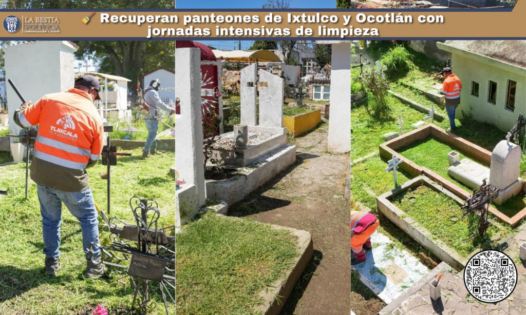 Como parte de una estrategia permanente para preservar espacios públicos dignos y funcionales, el Ayuntamiento de Tlaxcala, que encabeza @alfonsosanchezgarcia.tlx, realizó jornadas intensivas de limpieza y rehabilitación en los panteones de las comunidades de Santa María Ixtulco y Ocotlán.