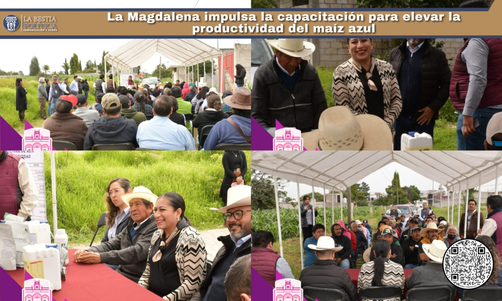 En un esfuerzo conjunto por fortalecer al sector agrícola, la presidenta municipal de La Magdalena Tlaltelulco, Rocío Meléndez Pluma, acompañó al equipo técnico de la Secretaría de Impulso Agropecuario (SIA) durante la realización del Día Demostrativo de Agricultura de Alta Productividad, enfocado en mejorar el rendimiento del maíz azul, uno de los cultivos emblemáticos de la región.
