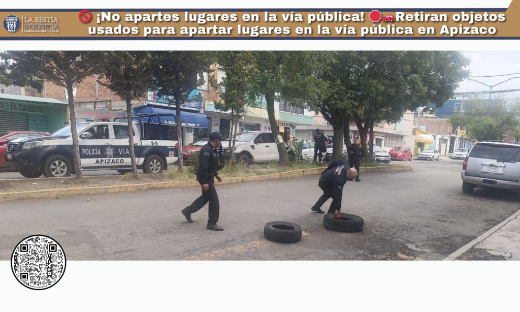 Como parte del operativo permanente para garantizar la movilidad y el libre tránsito, autoridades municipales llevaron a cabo el retiro de diversos objetos colocados indebidamente en calles de la ciudad, entre ellos cubetas, cajas, llantas y otros artĂculos utilizados para apartar espacios.