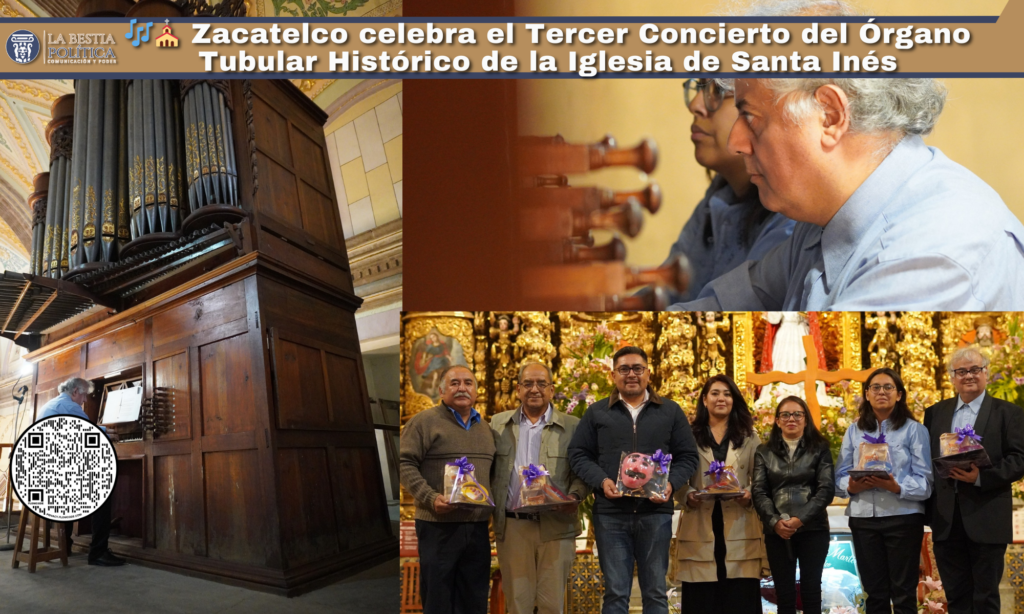 El Gobierno Municipal de Zacatelco 2024–2027 realizó con gran éxito el Tercer Concierto del Órgano Tubular Histórico en la Iglesia de Santa Inés Zacatelco, un evento cultural que reunió a autoridades, ciudadanía y amantes de la música para disfrutar de un instrumento emblemático del patrimonio sonoro del municipio.
