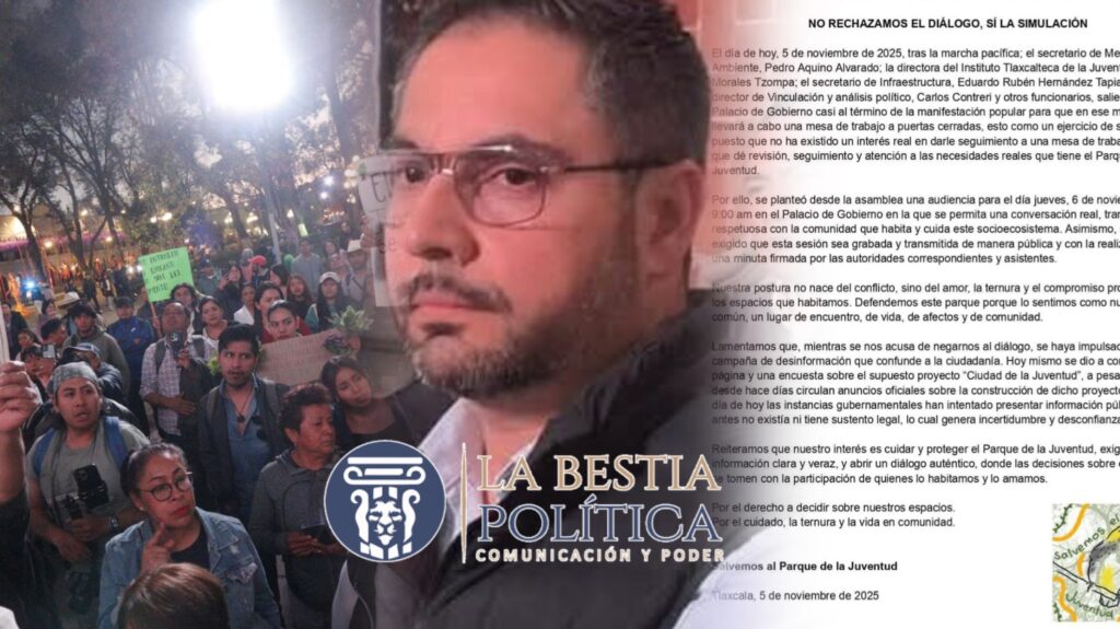 A través de un comunicado, el grupo señaló que, casi al término de la manifestación, el secretario de Medio Ambiente, Pedro Aquino Alvarado; la directora del Instituto Tlaxcalteca de la Juventud, Lucero Morales Tzompa; y otros funcionarios salieron del Palacio de Gobierno para ofrecer una reunión a puertas cerradas, la cual calificaron como una acción simulada.