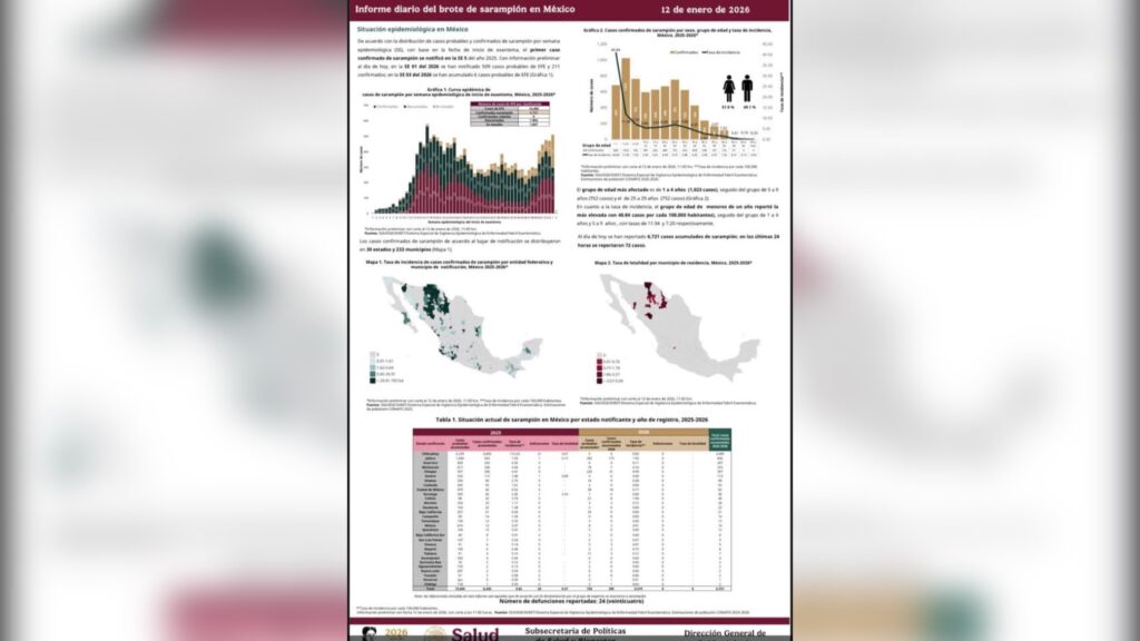 De acuerdo con “La Jornada”, México está a punto de perder la certificación de país libre de sarampión que otorga la Organización Mundial de la Salud (OMS), ya que en febrero se cumple un año del primer brote de este virus en el país y que no ha sido erradicado, pues hasta ayer sumaban más de 6 mil 700 casos, de los cuales 5 por ciento siguen activos, alertó la directora del Programa Salud de la Infancia y la Adolescencia del Centro Nacional Para la Salud de la Infancia y la Adolescencia de la Secretaría de Salud, Samantha Gaerther Barnard.
