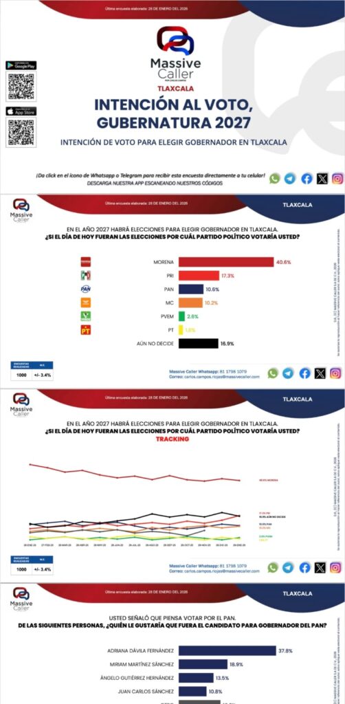 Ambas mediciones presentan un escenario interno cerrado y competitivo rumbo a los próximos procesos. En ellas, la senadora Anabell Ávalos Zempoalteca aparece con 33 por ciento de preferencia, mientras que Enrique Padilla Sánchez, presidente del PRI Tlaxcala, registra 30 por ciento, mostrando una contienda sólida y con márgenes que reflejan fuerza política real.