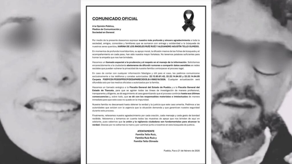 Ante este contexto, las familias Tello Ruiz, Ruiz Ruiz y Tello Olmedo emitieron un documento este sábado 21 de febrero en el que, si bien agradecen el apoyo ciudadano durante la búsqueda, centran su mensaje en un reclamo de justicia.