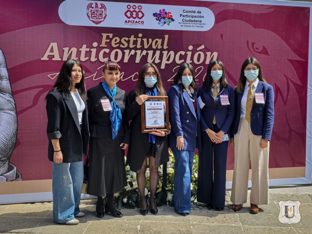 Alumnas del décimo semestre de la Licenciatura en Derecho de la Universidad Metropolitana de Tlaxcala (UMT), perteneciente al Sistema Incorporado a la UNAM, tuvieron una destacada participación en el Festival Anticorrupción 2026, organizado por el Ayuntamiento de Apizaco.