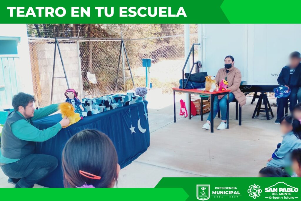 El Ayuntamiento de San Pablo del Monte, a través de la Dirección de Difusión y Cultura, gestionó el programa “Teatro en tu Escuela” con el objetivo de contribuir a la educación y fomentar las artes en las comunidades más alejadas del municipio.