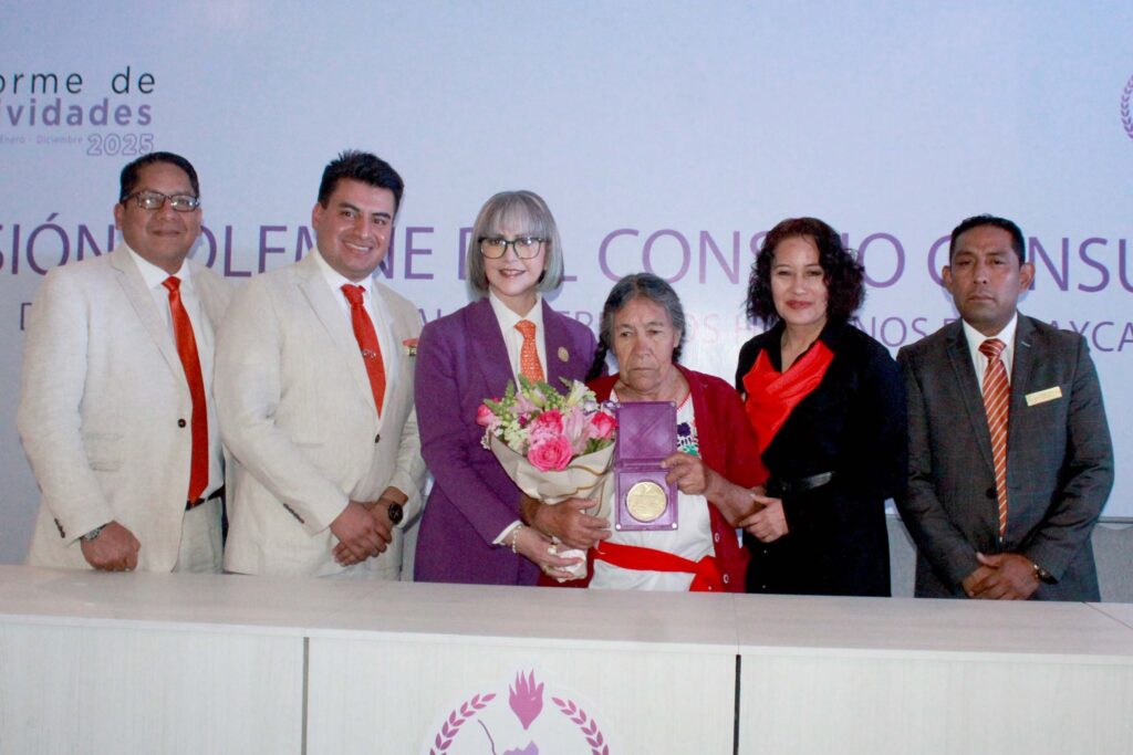 En Sesión Pública Solemne del Consejo Consultivo, presidio por la Ombudsperson Jakqueline Ordoñez Brasdefer, e integrado por Leticia Valera González, Agustín Flores Peña, Fernando George Zecua y Jesús Rivera Pantoja, se hizo el reconocimiento a la mujer originaria de Contla de Juan Cuamatzi, quien recibió de manos de la gobernadora del estado, Lorena Cuéllar Cisneros la Presea.