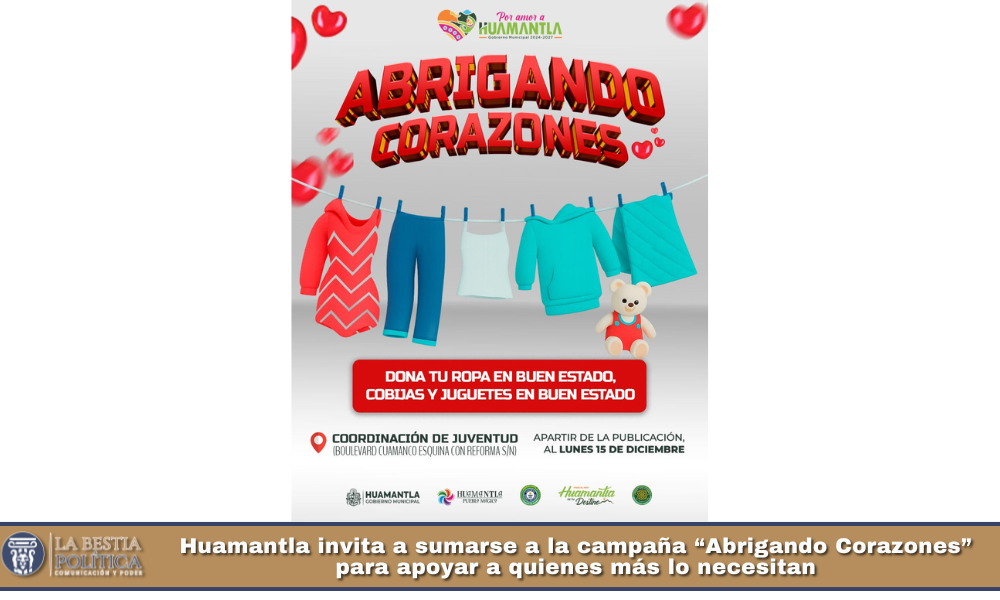 Huamantla invita a sumarse a la campaña “Abrigando Corazones” para apoyar a quienes más lo necesitan.