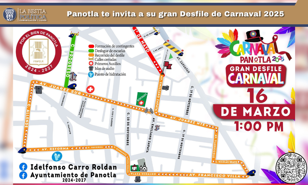 El H. Ayuntamiento de Panotla, encabezado por el presidente municipal Idelfonso Carro Roldán, invita a todas las familias, turistas y habitantes del municipio a disfrutar del Gran Desfile de Carnaval…