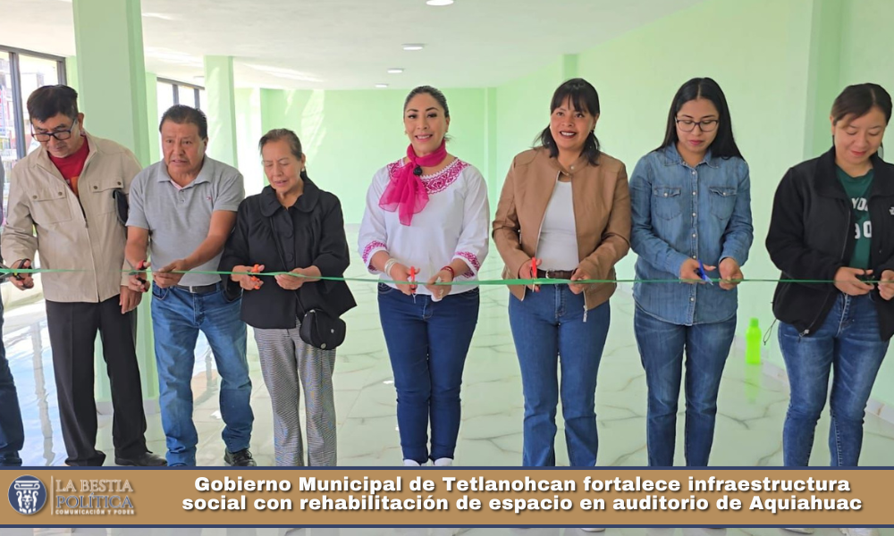 Gobierno Municipal de Tetlanohcan fortalece infraestructura social con rehabilitación de espacio en auditorio de Aquiahuac.
