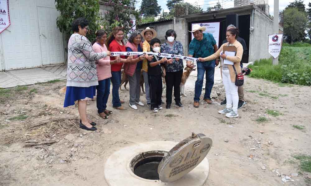 Entregan red de drenaje sanitario en San Diego Metepec, Tlaxcala.