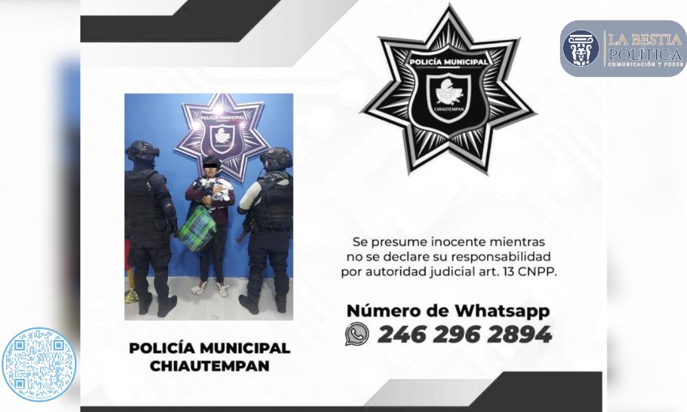 Gracias a los constantes recorridos preventivos realizados por la Dirección de Seguridad Pública Municipal, Vialidad y Protección Civil de Chiautempan, elementos adscritos lograron la detención de un sujeto por robo…