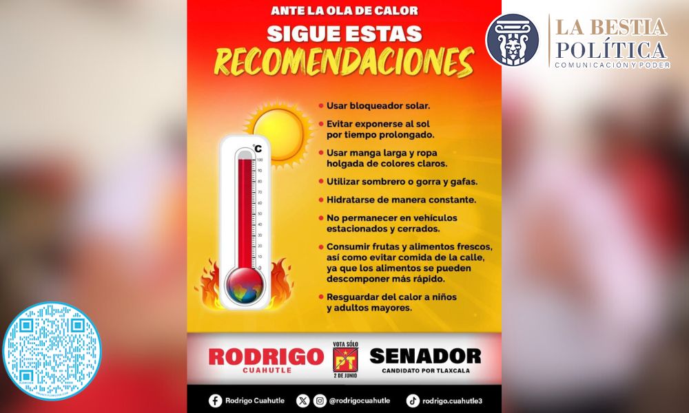Rodrigo Cuahutle, Candidato al Senado, brinda recomendaciones ante la ola de Calor en Tlaxcala.