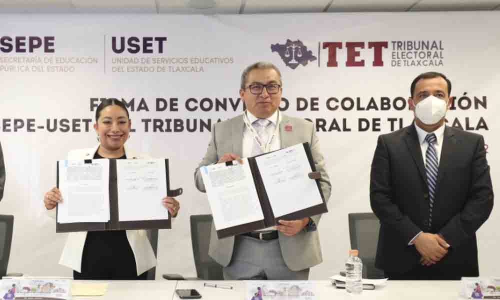 La Secretaría de Educación Pública del Estado y la Unidad de Servicios Educativos de Tlaxcala (SEPE-USET) firmó un convenio de colaboración con el Tribunal Electoral de Tlaxcala (TET) en materia de violencia de género contra las mujeres.