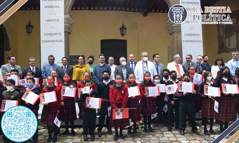 Al finalizar el acto protocolario, alumnas y alumnos de diversas instituciones de educación básica de la capital, fueron reconocidos por el CONSAFRAN como Custodios Infantiles Honoríficos del Patrimonio Cultural.