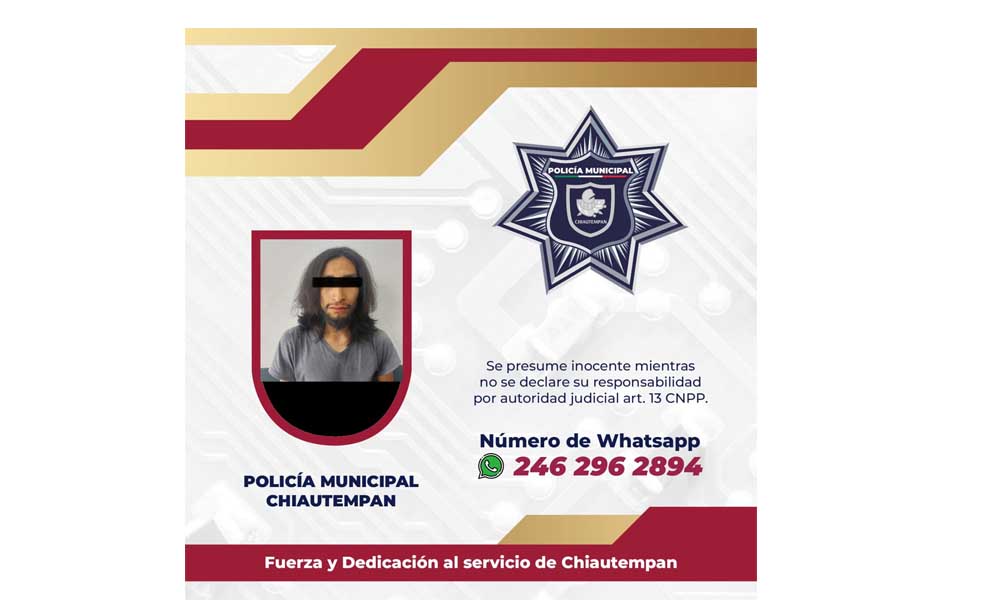 Luego de esto y ante la negativa del detenido para dialogar, los policías de Chiautempan aseguraron y trasladaron a Misael N. de 28 años de edad y originario de Contla de Juan Cuamatzi a la Dirección de Seguridad Pública Municipal, Vialidad y Protección Civil para ser puesto a disposición.