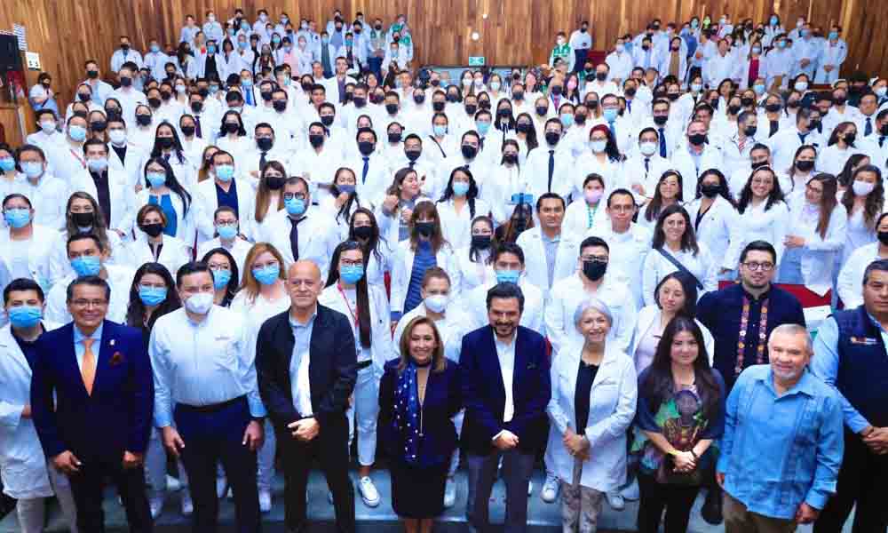 Zoé Robledo mencionó que, en diferentes momentos del año, llegarán al estado 163 médicos residentes debido a los tiempos de rotación por especialidad, mismos que constituirán una fuerza de trabajo complementaria a lo que hacen los médicos ya graduados.