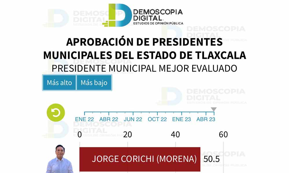 A lo largo del 2023, el alcalde de Tlaxcala Capital, Jorge Corichi Fragoso, se ha posicionado como el mejor evaluado de entre los ediles de los 60 municipios de la entidad, de acuerdo a reportes de la casa encuestadora con Demoscopia Digital, con calificaciones aprobatorias.