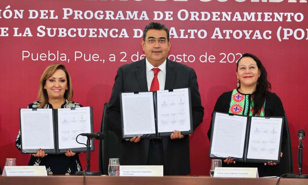 La gobernadora Lorena Cuéllar Cisneros y su homólogo de Puebla, Sergio Salomón Céspedes Peregrina signaron un convenio de coordinación con la titular de la Secretaría de Medio Ambiente y Recursos Naturales (Semarnat), María Luisa Albores González para la creación del Programa de Ordenamiento Ecológico Regional de la Subcuenca del Alto Atoyac (POERSAA).