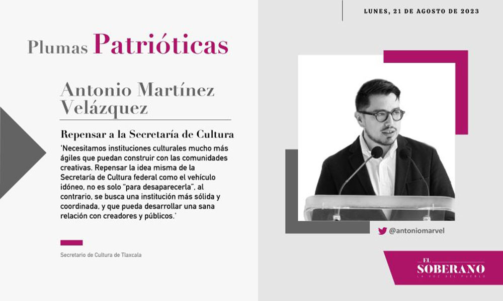 Desde mi responsabilidad como Secretario de Cultura de Tlaxcala, he reflexionado lo mismo: necesitamos instituciones culturales mucho más ágiles que puedan construir con las comunidades creativas. Repensar la idea misma de la Secretaría de Cultura federal como el vehículo idóneo, no es solo “para desaparecerla”, al contrario, se busca una institución más sólida y coordinada, y que pueda desarrollar una sana relación con creadores y públicos.