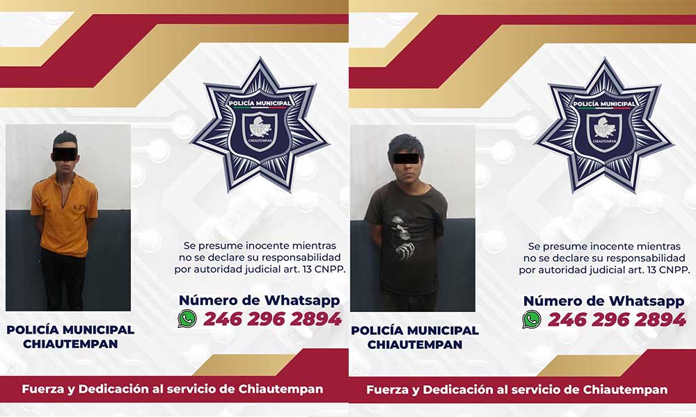 Elementos del Grupo de Operaciones Tácticas (GOT) de la Dirección de Seguridad Pública Municipal, Vialidad y Protección Civil de Chiautempan detuvieron a dos sujetos identificados por daños a un vehículo particular, en la modalidad de «cristalazo».