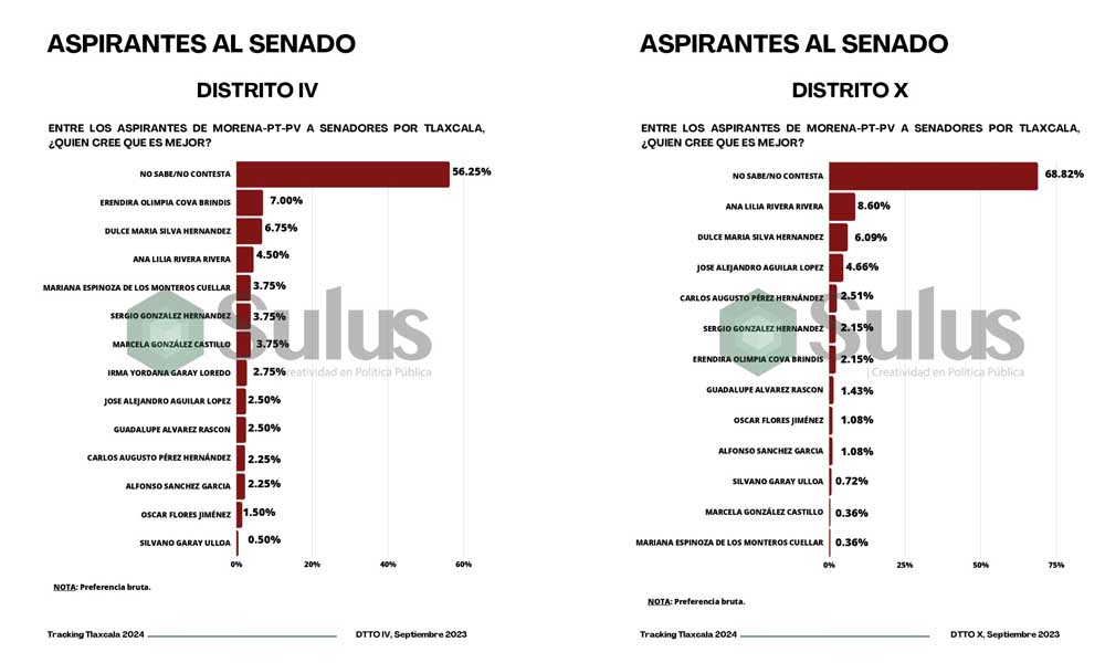 Y ahí tendrán que echarle ganas los que aspiran en el búnker de la gobernadora, pues los diversos estudios de opinión, por ejemplo, la empresa de Sulus en su tracking mensual 2024 por distritos locales en las aspiraciones al Senado,  quienes están bien posicionados se puede decir no son parte del equipo lorenista, como es el caso de la actual senadora Ana Lilia Rivera y la diputada federal Dulce Silva.