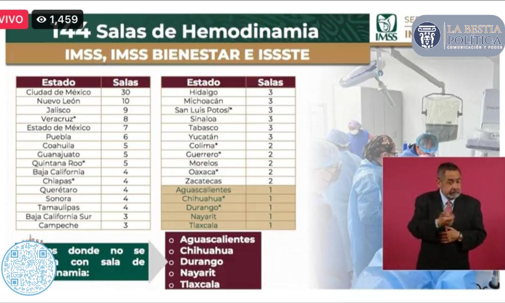Además, refirió que las enfermedades del corazón son la principal causa de muerte de nuestro país y actualmente Guerrero, Campeche, Nayarit, Colima y Tlaxcala, cuentan con una Sala de Hemodinamia, lo que cubre esta atención que por años no tenían y que hoy pueden otorgar a la población sin seguridad social.