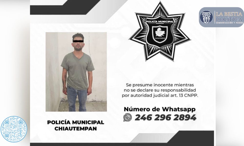Los elementos adscritos a la Policía Municipal de Chiautempan aseguraron a Osvaldo N., de 19 años de edad y originario de la Ciudad de México (CDMX); Carlos Manuel N., de 33 años de edad y originario de Tabasco y por último, Alejandro N., de 34 años de edad y oriundo de Tlaxcala.