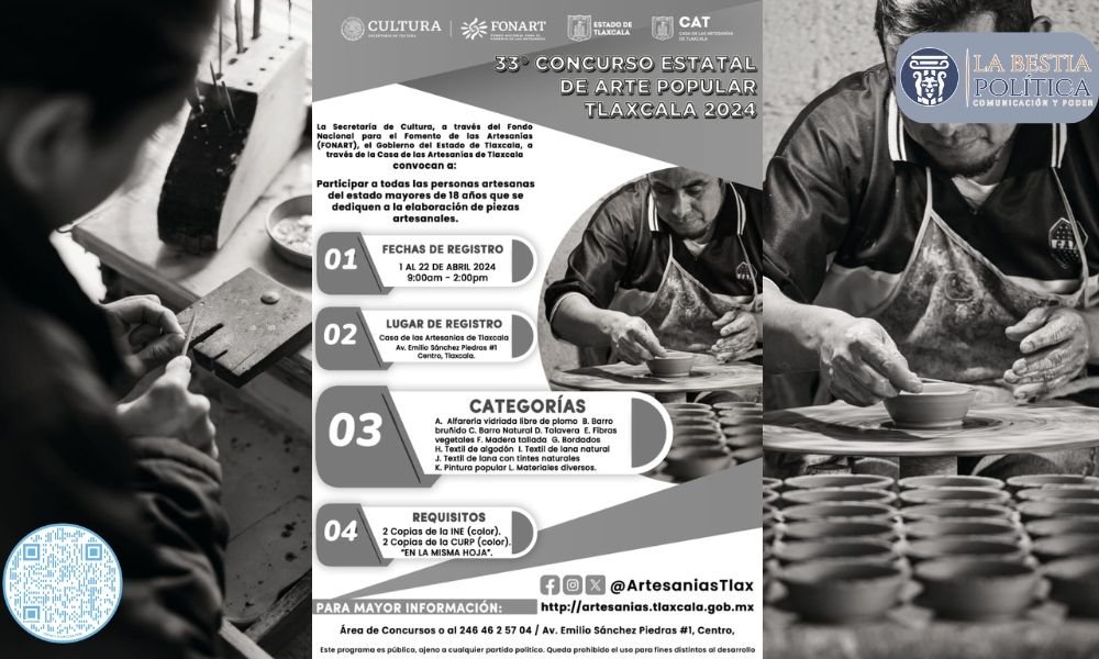 La Casa de las Artesanías de Tlaxcala (CAT) invita a los artesanos del estado a participar en el XXXIII Concurso Estatal de Arte Popular Tlaxcala 2024.