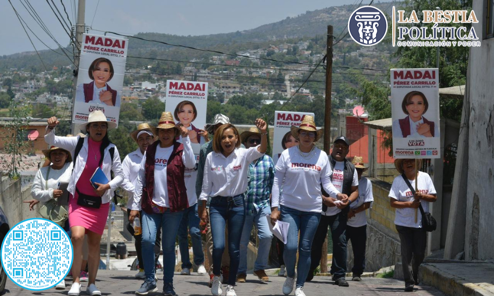 Madai Pérez Carrillo, quien encabeza la candidatura de los partidos Movimiento Regeneración Nacional (Morena), Verde Ecologista de México (PVEM), Redes Sociales Progresistas Tlaxcala (RSPT), Nueva Alianza Tlaxcala (PANALT) y Fuerza por México (FxM), ha sido recibida con entusiasmo y cariño por la gente que conforman el Distrito 07.