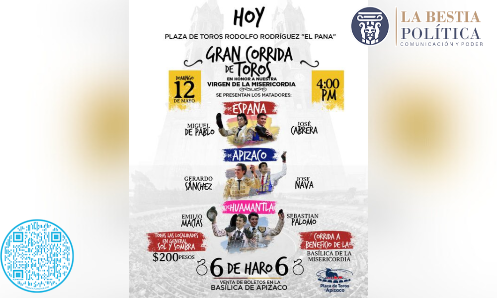 Hoy, no te pierdas la emoción de la tradicional #corrida en Honor a la Virgen de la Misericordia te esperamos en punto de las 4 de la tarde. Últimos boletos, adquiérelos en la Basílica de #Apizaco Navegación de entradas Aviso, se informa que los semáforos de Zaragoza y boulevard la Libertad no están funcionando, en Apizaco El Pozo 3 ubicado en la colonia El Alto, en Chiautempan se encuentra apagado.