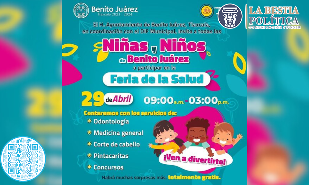 #Atención. Invitamos a todos los niños y niñas de Benito Juárez a la Feria de la Salud. En este evento contaremos con diversas actividades para los más pequeños. ¡Los esperamos! #LaBestiaPolíticaBenitoJuarez #LaBestiaPolítica Navegación de entradas Jornadas de Salud para Mascotas en Benito Juárez: Desparasitación, Vacunación, Esterilización y Estética Horarios de Transporte a Tlaxcala en Benito Juárez: Información Importante.