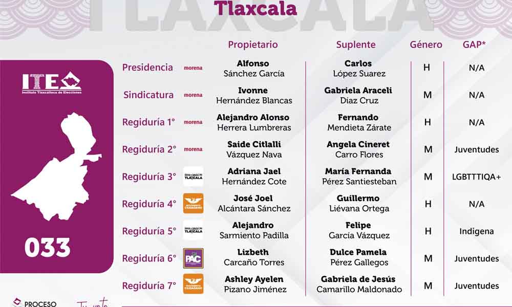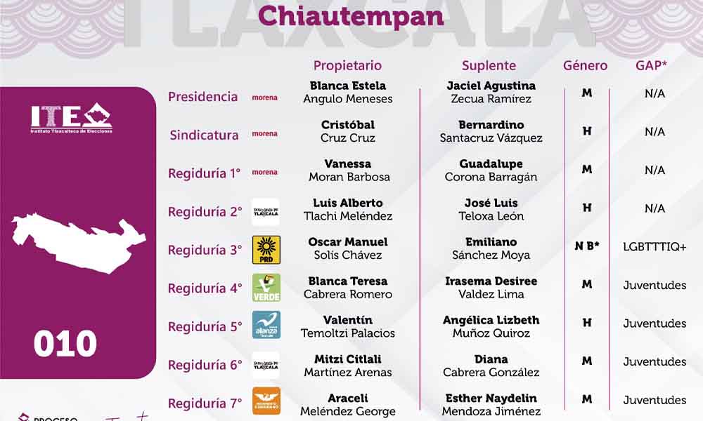 Finalmente, en Xaltocan y Acuamanala las candidaturas a la primera regiduría exigen su inclusión alegando que alcanzan la votación requerida para ello, lo cual no fue considerado por el Consejo General del ITE.