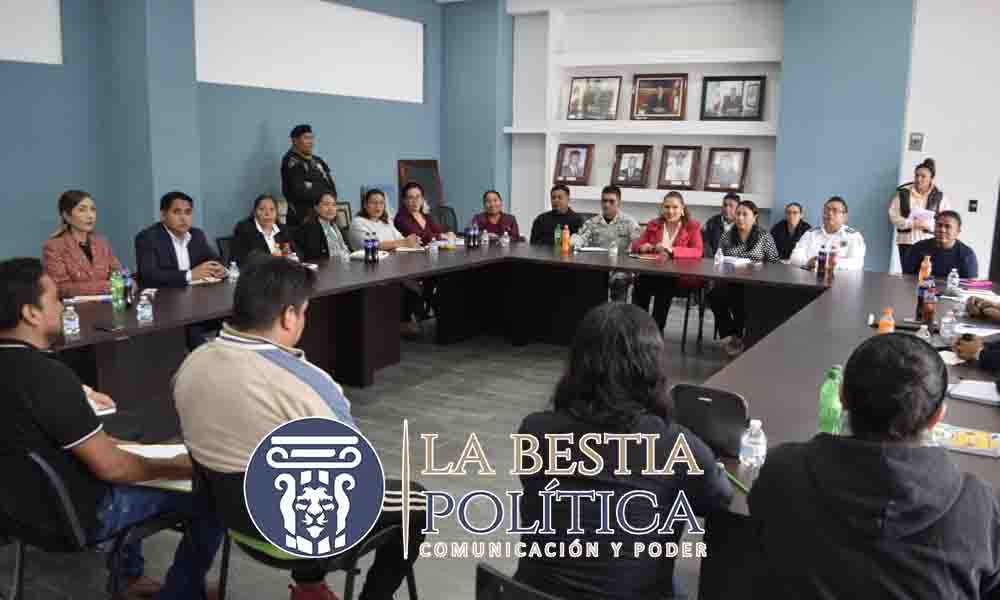 La mesa de trabajo fue encabezada por la alcaldesa Rocío Meléndez Pluma y la coordinadora regional Ilse Viridiana Hernández Mejía, Secretaria Técnica para la Construcción de Paz y Seguridad Regional en Tlaxcala. Además, participaron representantes de la Guardia Nacional, Policía Estatal, regidores y delegados del municipio.