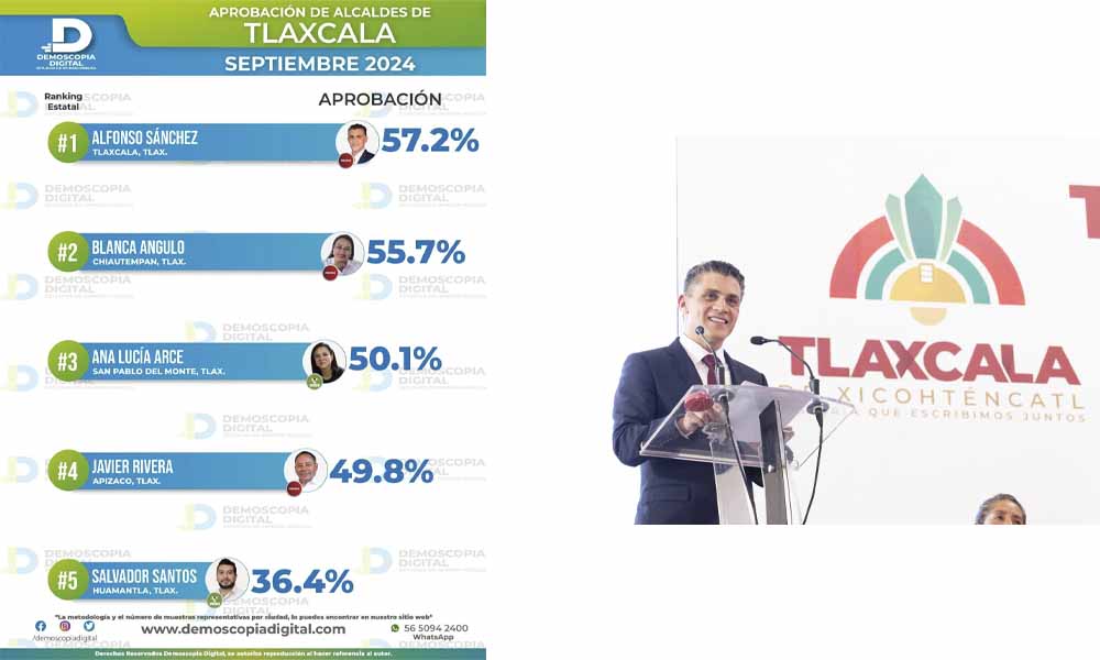 Con el 57.2% de aprobación, Alfonso Sánchez García es el presidente mejor evaluado de Tlaxcala, a un mes de haber iniciado la administración en las 60 alcaldías del estado, esto de acuerdo al reciente estudio de la empresa Demoscopia Digital denominado «Ranking Mejores Alcaldes por Estado» (https://demoscopiadigital.com/aprobacionalcaldes).