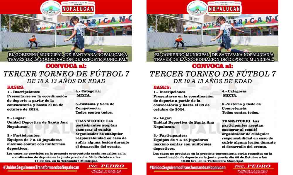 El torneo, que se realizará en las instalaciones municipales, es parte de un esfuerzo continuo por parte del gobierno local para impulsar la práctica deportiva como herramienta de transformación social. Con iniciativas como esta, el gobierno de Nopalucan apuesta por un futuro más saludable y participativo para las nuevas generaciones.