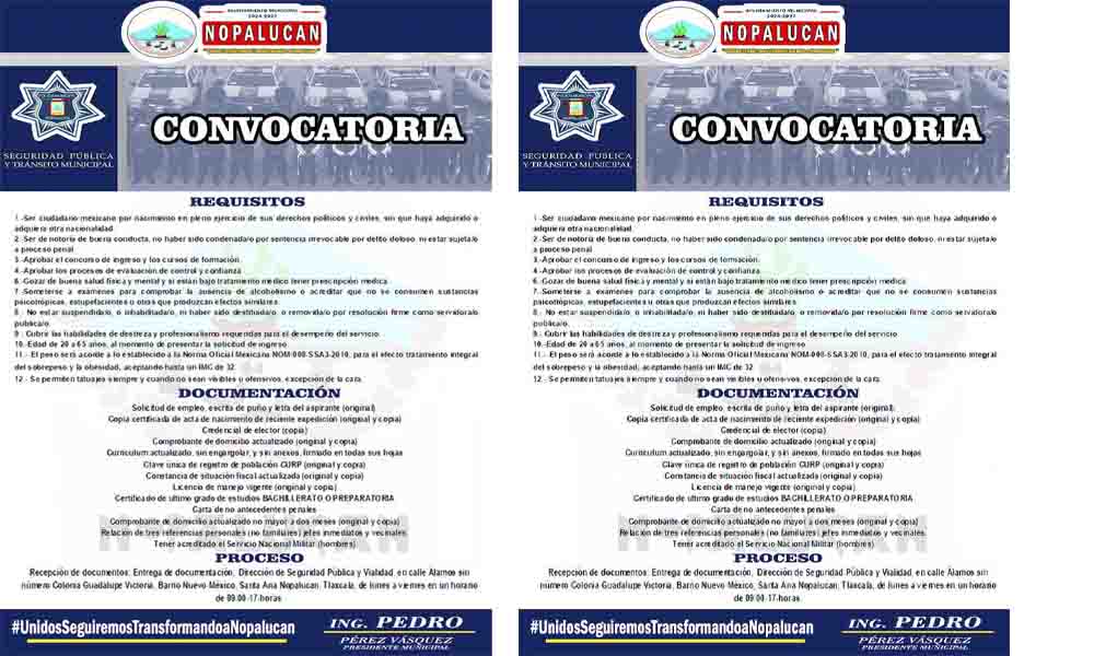 El Gobierno Municipal de Santa Ana Nopalucan ha lanzado una convocatoria de reclutamiento para aquellos ciudadanos con vocación de servicio, disciplina y un fuerte compromiso con la seguridad de la comunidad. Esta es la oportunidad de formar parte de la Policía Municipal de Nopalucan y contribuir activamente a la protección y bienestar de los habitantes del municipio.