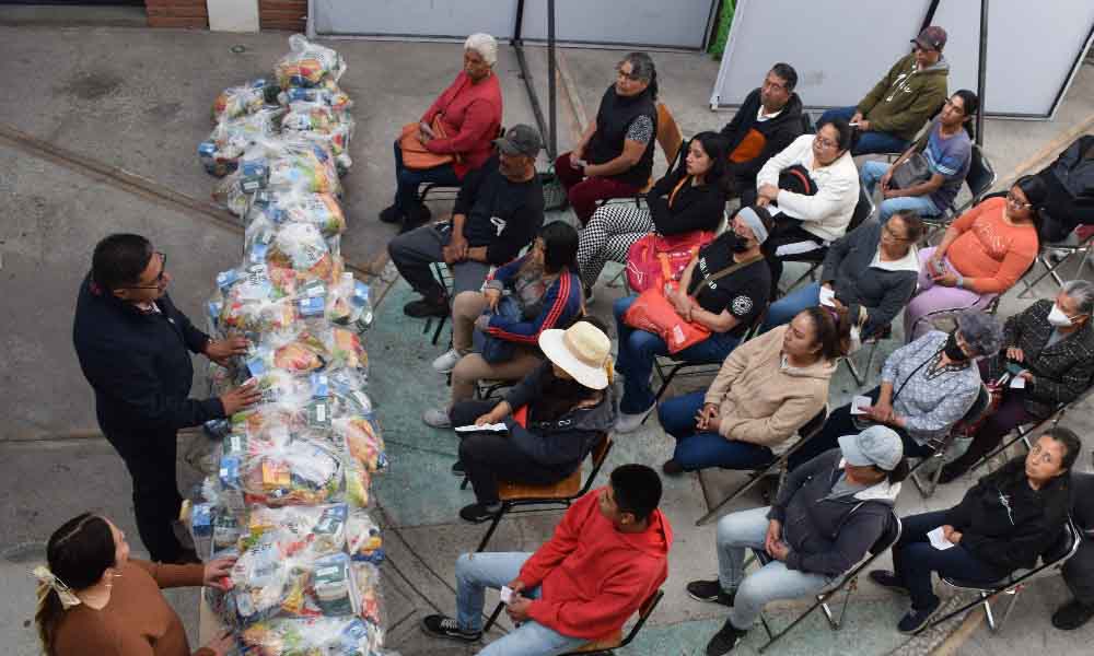 Familias zacatelquenses reciben despensas a bajo costo en pro de la economía familiar.
