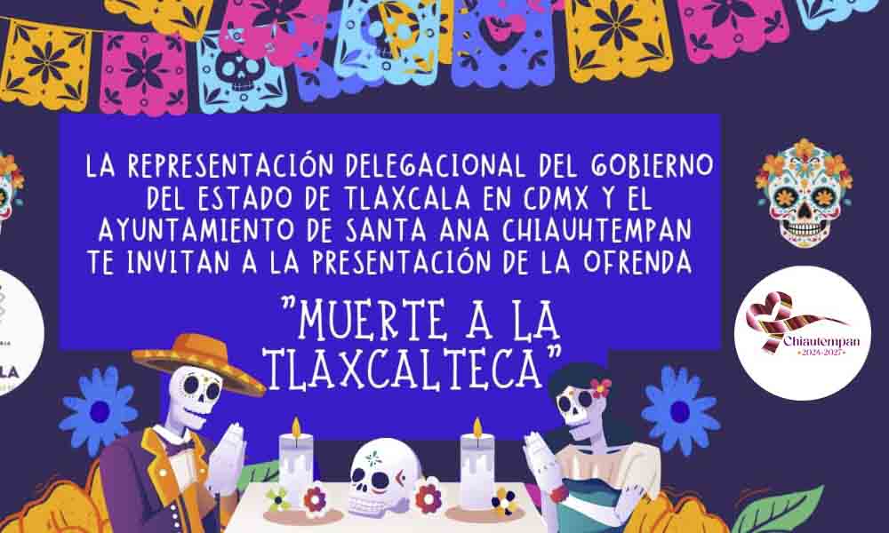 Con el objetivo de promover la riqueza cultural de Chiautempan, el próximo 26 de octubre se presentará la ofrenda «Muerte a la tlaxcalteca» en Casa Tlaxcala, ubicada en el centro histórico de la Ciudad de México, la cual estará elaborada con elementos representativos del estado, honrando la memoria de nuestros ancestros y la historia que define al municipio sarapero.
