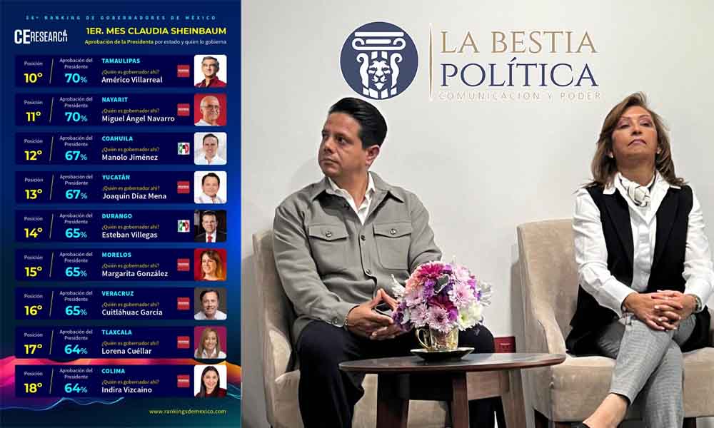 Sin embargo, apenas unos meses después, el panorama es distinto. En el más reciente estudio de CE Research, la aprobación de Cuéllar ha descendido al 64% en su estado, colocándola en el lugar 17 en cuanto a respaldo hacia la presidenta Claudia Sheinbaum. ¿Qué sucedió en este corto periodo para que una mandataria antes considerada destacada ahora muestre señales de desgaste y desconexión con la ciudadanía?