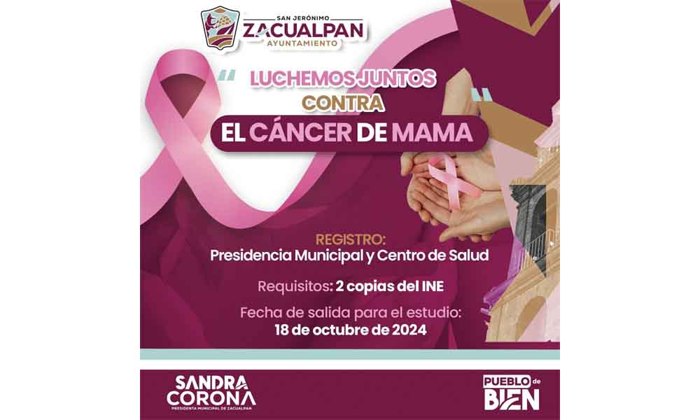 En el marco del Octubre Rosa, la alcaldesa hizo un llamado a las mujeres de Zacualpan para que se realicen mastografías, subrayando el compromiso del municipio en la prevención del cáncer de mama y la salud integral de las zacualpenses.