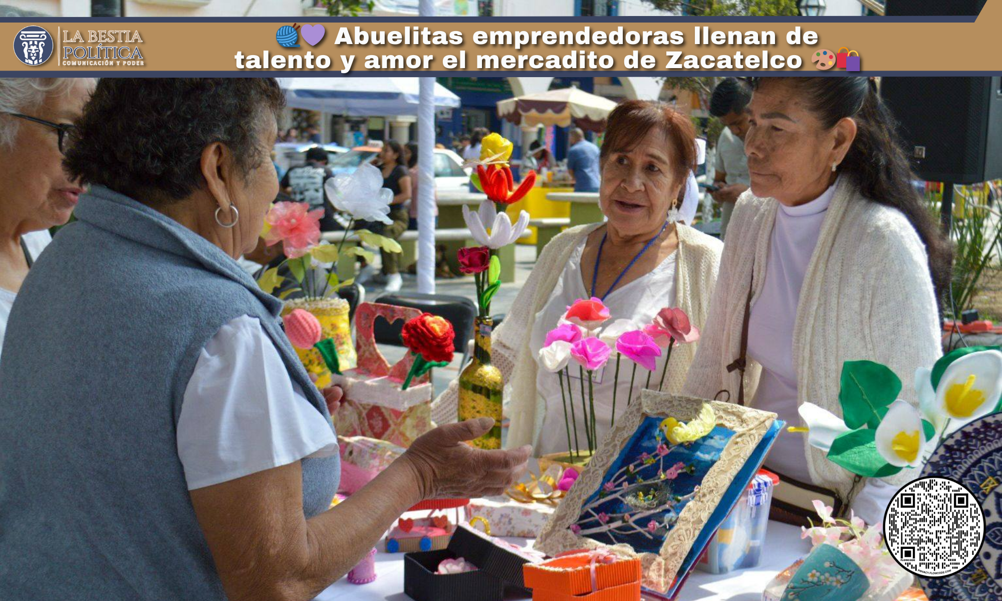 El presidente municipal, @José Miguel Acatzi Luna, visitó cada stand reconociendo el esfuerzo, dedicación y espíritu emprendedor de nuestras abuelitas 👏.