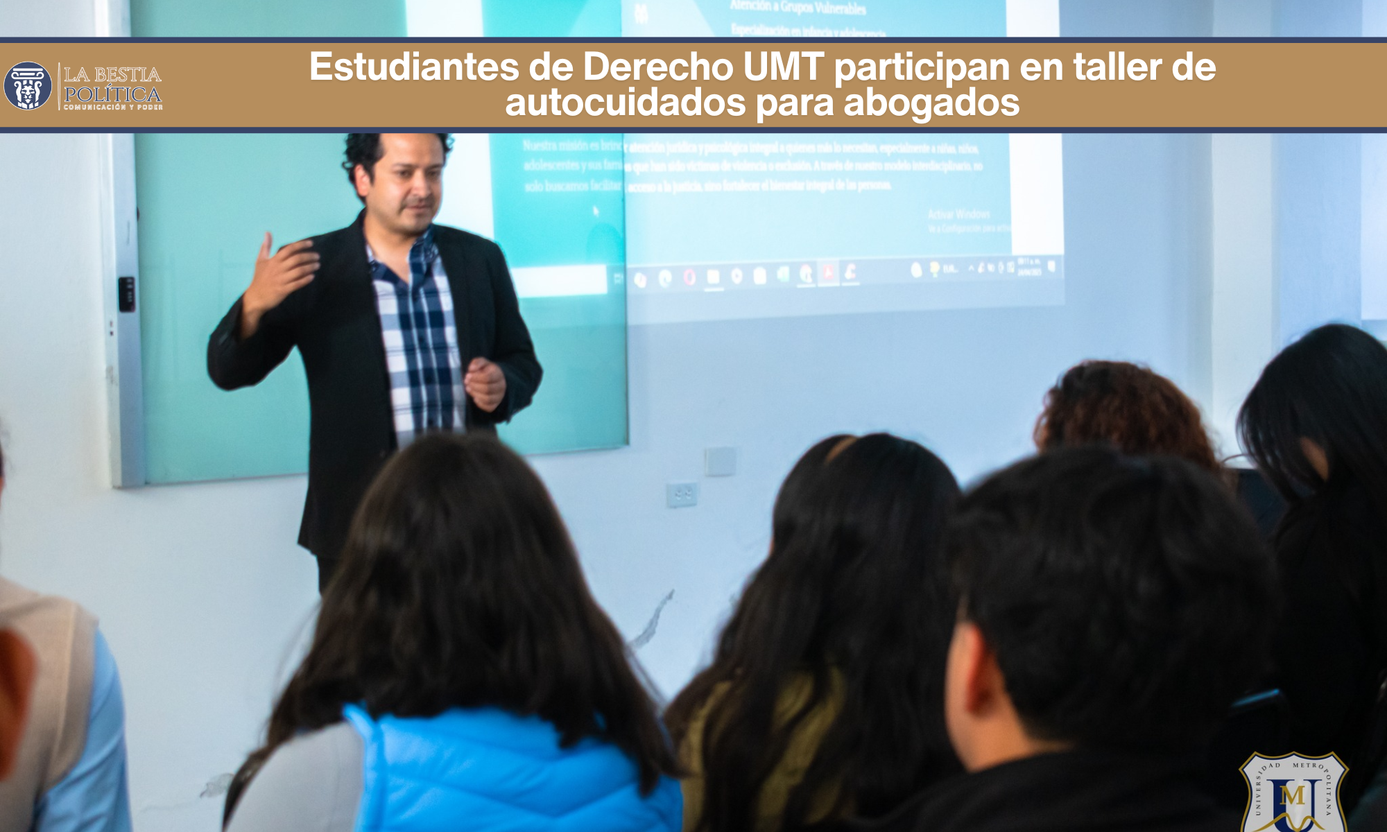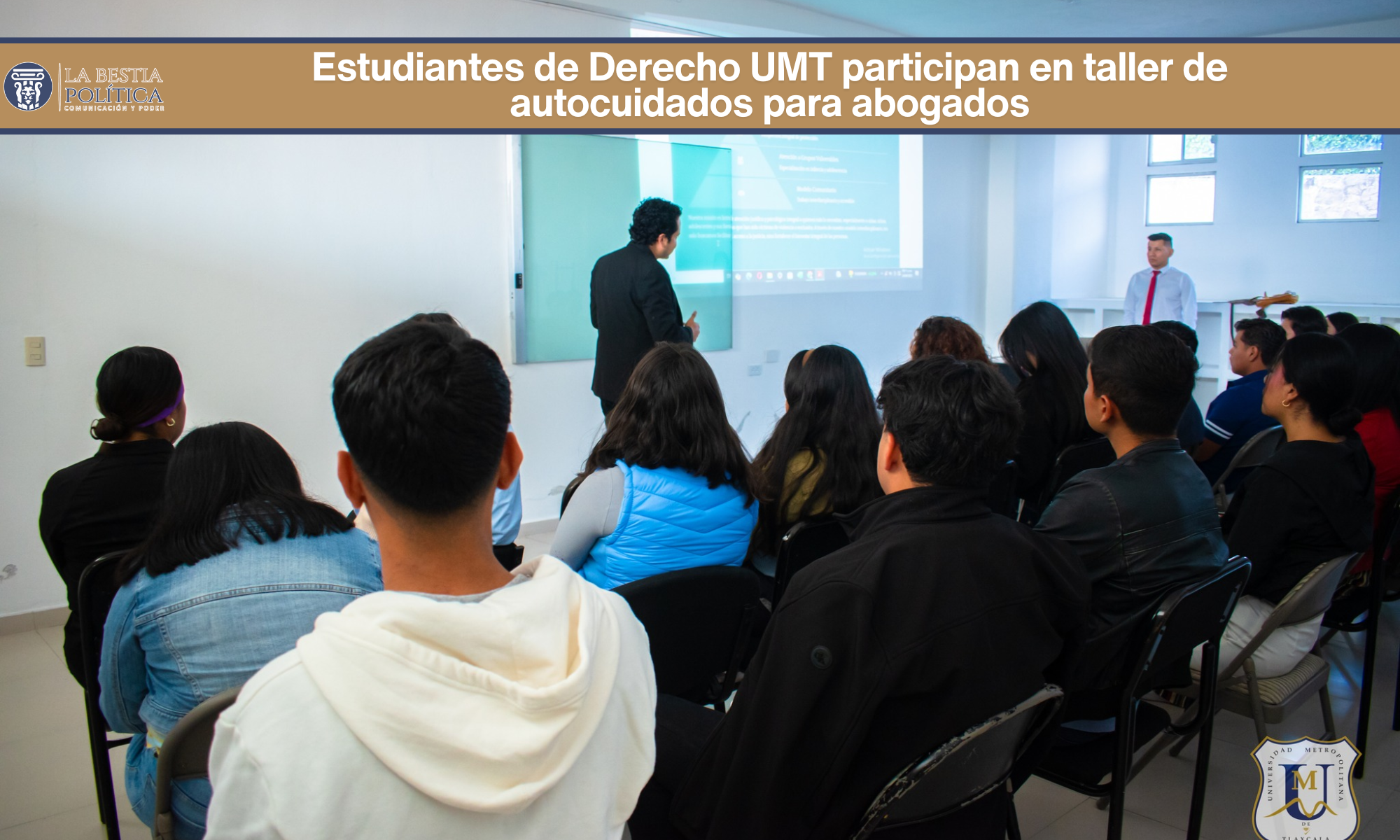 Estudiantes de la Licenciatura en Derecho de la Universidad Metropolitana de Tlaxcala, incorporada a la UNAM, participaron en el taller «Autocuidados para abogados», reafirmando su compromiso con una formación integral que incluye la protección de su bienestar personal y profesional.