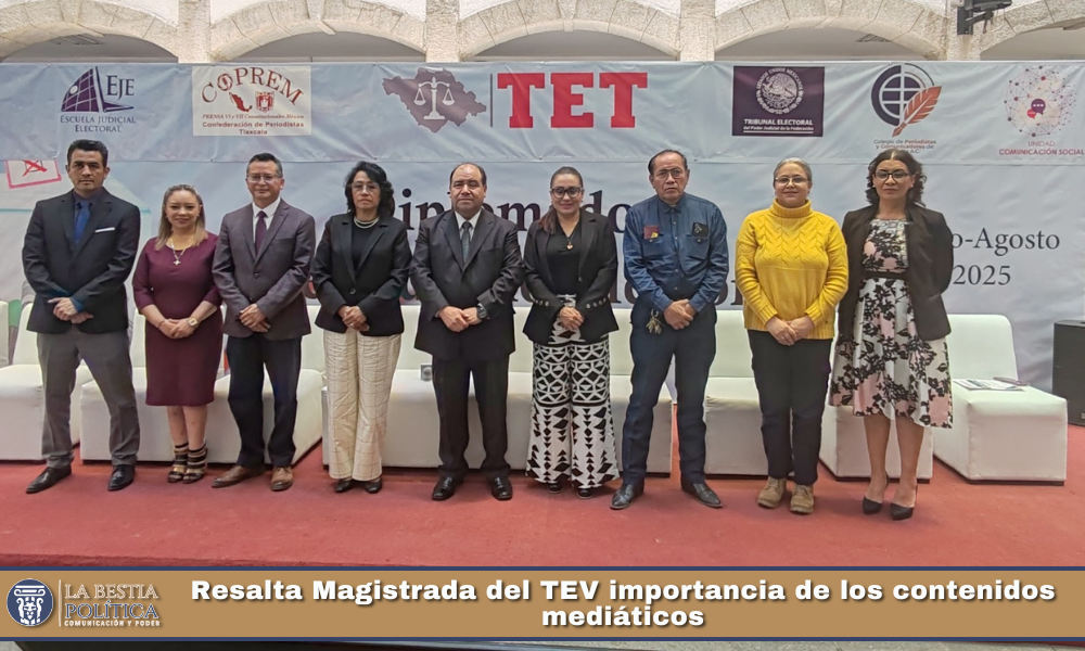 Los contenidos mediáticos pueden contribuir a un cambio, como es el caso del empoderamiento de las mujeres, señaló la Magistrada del Tribunal Electoral de Veracruz (TEV), Tania Celina Vásquez Muñoz, durante la Conferencia Magistral “Hacia una comunicación igualitaria: políticas de género en los contenidos mediáticos”, con la que se iniciaron las actividades del diplomado en Periodismo Electoral, impulsado por el Tribunal Electoral de Tlaxcala (TET), la Confederación de Periodistas de México (Coprem) en Tlaxcala, y el Colegio de Periodistas y Comunicadores de Tlaxcala.