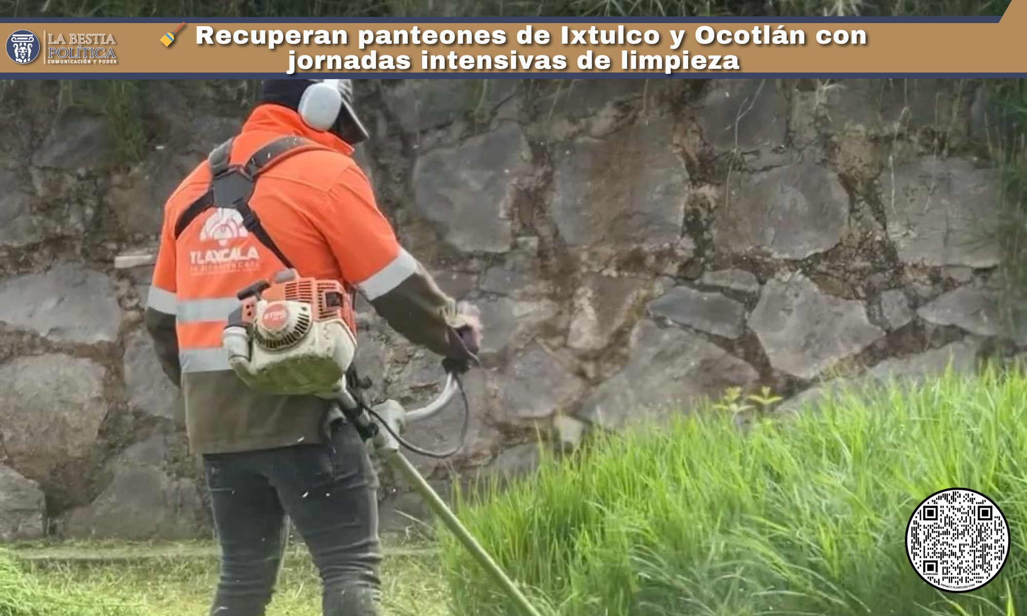 Como parte de una estrategia permanente para preservar espacios públicos dignos y funcionales, el Ayuntamiento de Tlaxcala, que encabeza @alfonsosanchezgarcia.tlx, realizó jornadas intensivas de limpieza y rehabilitación en los panteones de las comunidades de Santa María Ixtulco y Ocotlán.