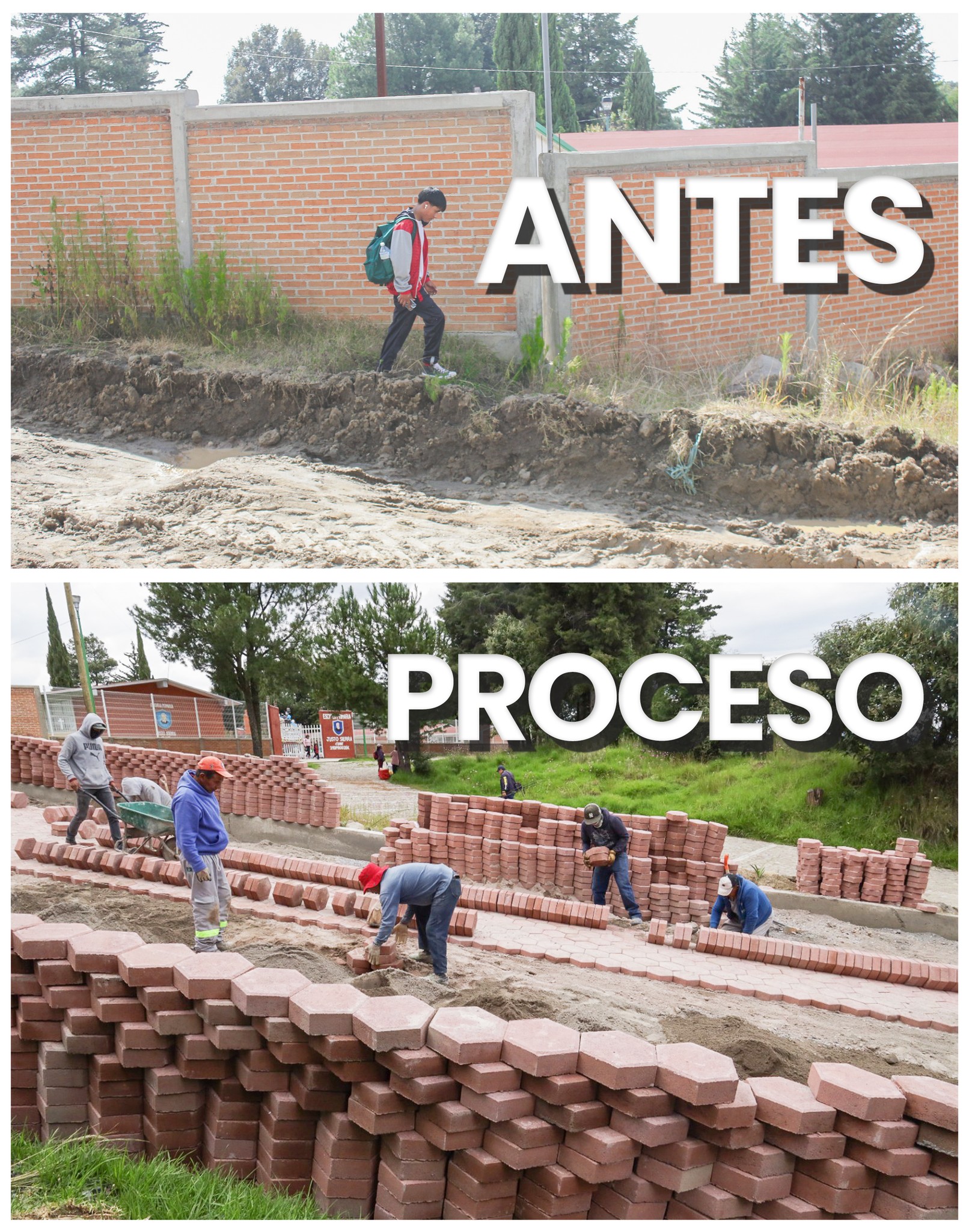 Por muchos años, esta vialidad —utilizada diariamente por niñas y niños para llegar a su escuela primaria— presentaba problemas al ser de terracería: durante las lluvias se encharcaba y en temporada de calor se levantaba el polvo, lo que dificultaba el tránsito y provocaba que los alumnos ensuciaran sus uniformes o incluso sufrieran resbalones.